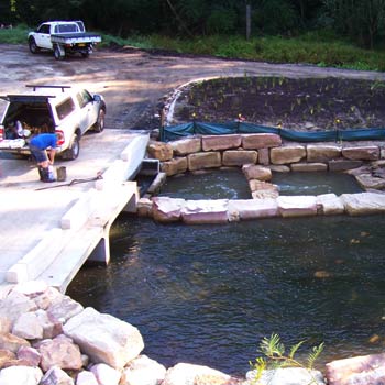 The fish are encouraged to swim to the specially constructed sandstone steps downstream from the box culverts.