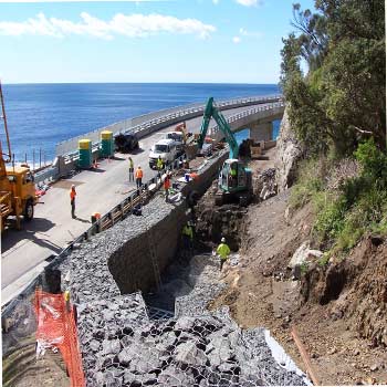 Collective Civil Pty Ltd constructed all of the gabions and rock mattress associated with the construction of the Minnamurra Bypass near Kiama on the NSW South Coast. We subcontracted to John Holland and the RTA. These three metre high gabions provide retention and rock fall protection and can be inspected as you travel the Sydney bound lane on the North side of the long bridge across the Minamurra River.