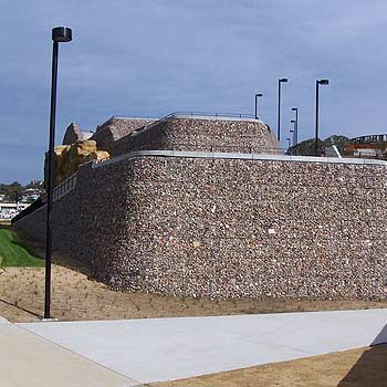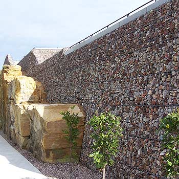 An example of this type installed by Collective Civil can be found at the park created on the old Caltex site at Balmain (Ballast Point). The welded mesh provides a more rigid uniform shape with a flat face.