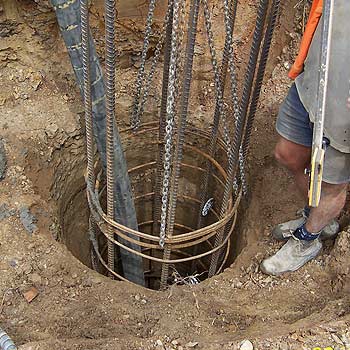 The deep 5m 900 diameter piers anchor the wall against overturning |