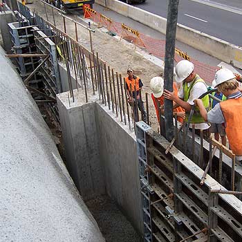 Collective Civil has a proven record of constructing concrete retaining walls for the RTA, Bovis Lend Lease and Daracon. We have in house and subcontract steel fixers, form workers and concretors. No job is too big or complicated. Concrete cast insitu walls are at the high end when comparing costs of types of retaining walls. There sometimes is no choice when there is limited room behind the wall to build the wall because of property boundaries.