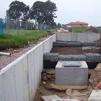 Collective Civil can build the whole rain Garden. We have the expertise to construct concrete retaining walls drainage and the gabions. This compact rain garden is at Rouse Hill built for Bovis Lease. |