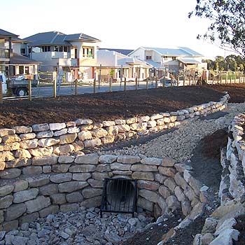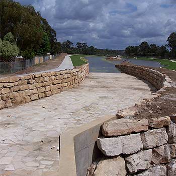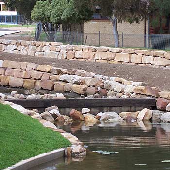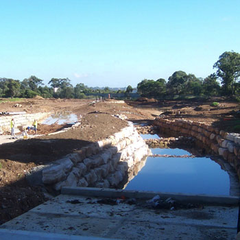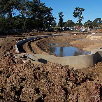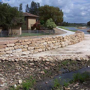 | This curved wall is part of the many water flow control structures built at Saltpan Ck Riverwood for Canterbury Council |