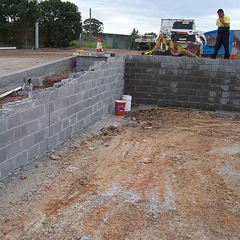 Core filled concrete block walls were constructed at Glendenning in western Sydney at the Gillespie heavy Crane depot. This type of wall can be fully designed to with stand the height of the retained fill and live loads expected behind the wall. Collective Civil construct the footing and built the wall with steel reinforcement and then core filled the hollow blocks with grout |