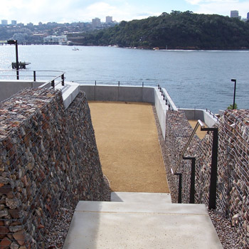 This is a welded mesh recycled rock face reinforced earth wall constructed by Collective Civil. The walls are used to construct an architectural tiered parkland and viewing point for the next Sydney Harbour Fireworks. We are particularly proud of this construction and very grateful for the opportunity to display the attention to detail that is typical of Collective Civil. |